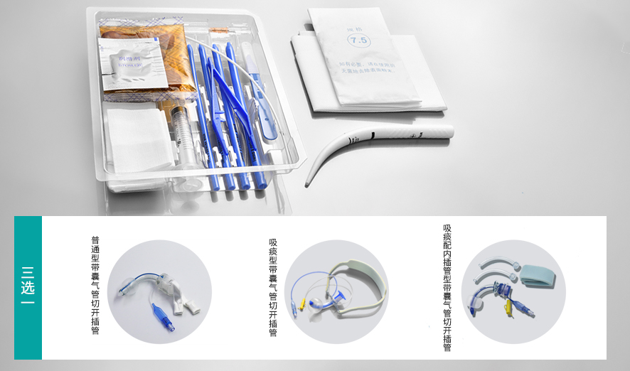 材料與結(jié)構(gòu):根據(jù)氣管切開插管套件內(nèi)不同組件配件包裝: